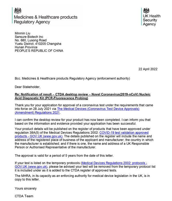 国内首个!今年会jinnianhui生物新冠核酸检测试剂获英国CTDA认证